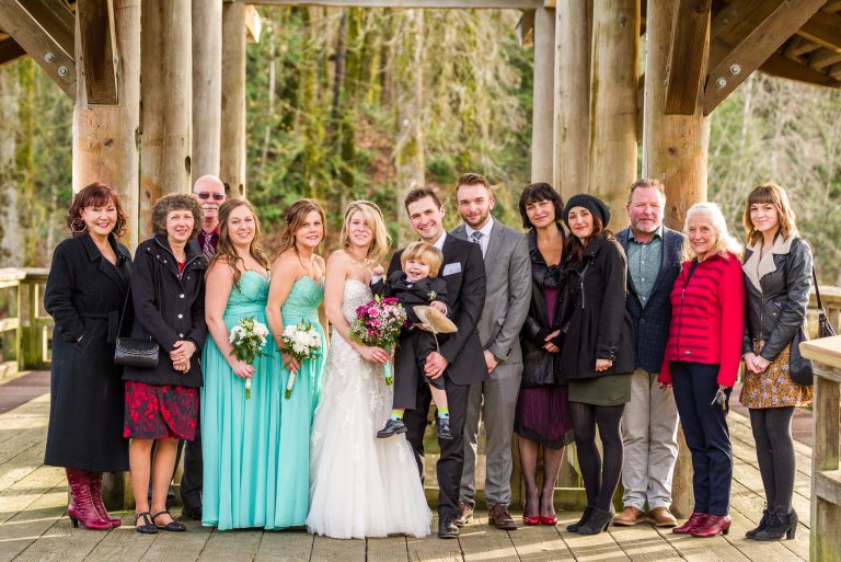 This elopement with a few friends and family was at Ellwood Park in Abbotsford, I’ve done a lot of photoshoots there, both for family sessions as well as engagements. It’s a great location with a lot of variety of locations. During the ceremony, the light was just perfect to capture some beautiful memories for these lovely pair. Even though this was a November wedding these two didn’t let the cooler temperatures dampen their spirits!