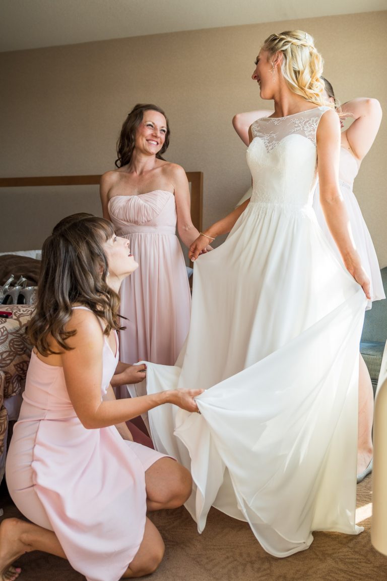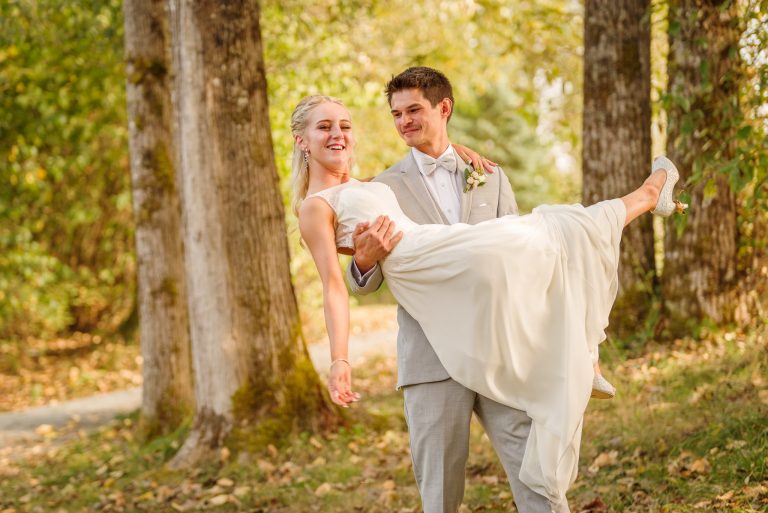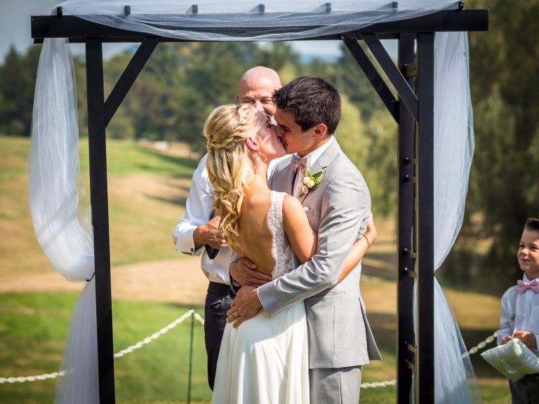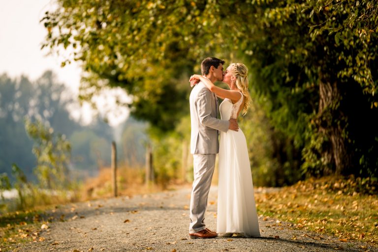 Caitlind and Jordan are an awesome couple and are almost the definition of young love. They chose the Coast Hotel and Convention Center in Langley to get ready. The large room allowed for some great “getting ready” shots. From there we went to the Fort Langley Golf Course for the ceremony. It’s a great location and worked well for their families to get together to share their special day. I chose to take them down to the park by the edge of the Fraser River in Fort Langley for their formals. This location, especially with the gorgeous golden hour we got that day, worked so well for photos that will hang on their wall for years.